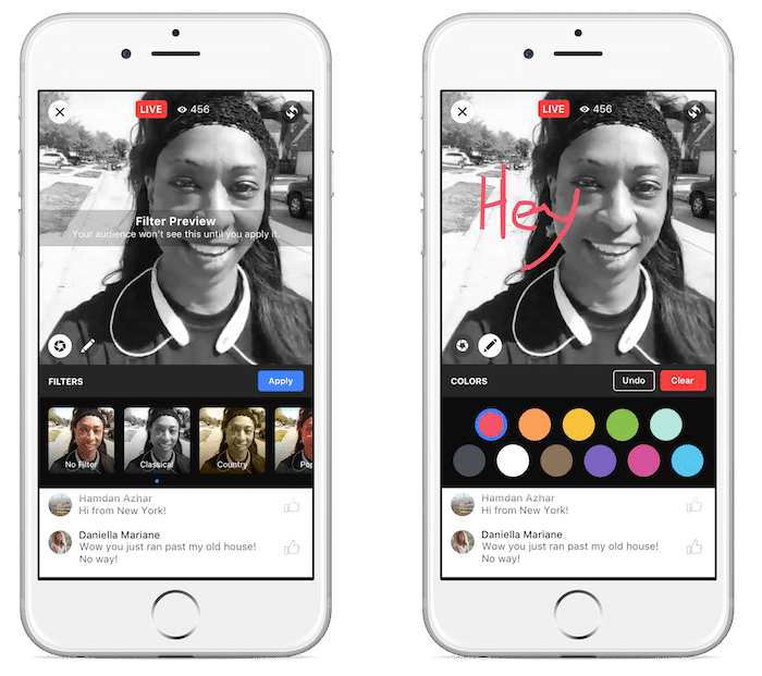 Facebook is also adding filters and editing tools similar to Snapchat. This is a fun way to make the content personalized and engaging. You will be able to apply these tools to your live broadcasts.