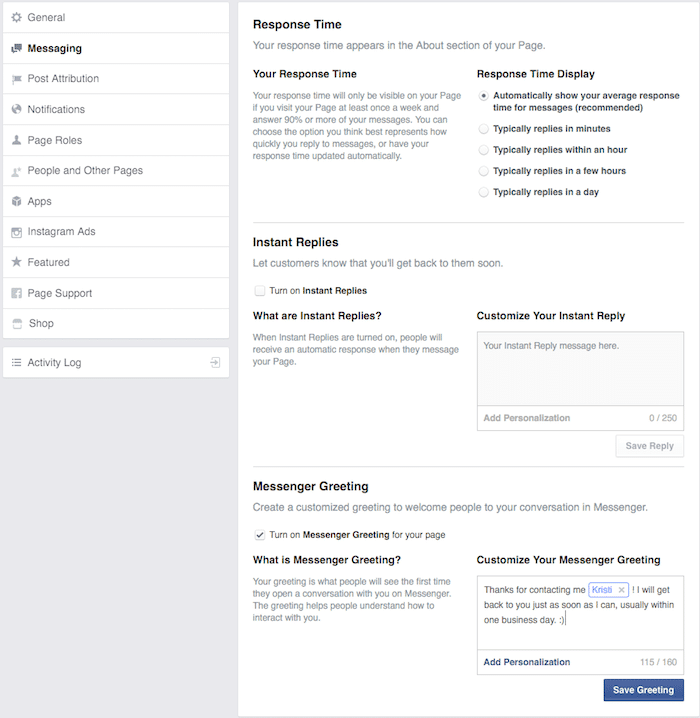 Facebook Page’s Messenger